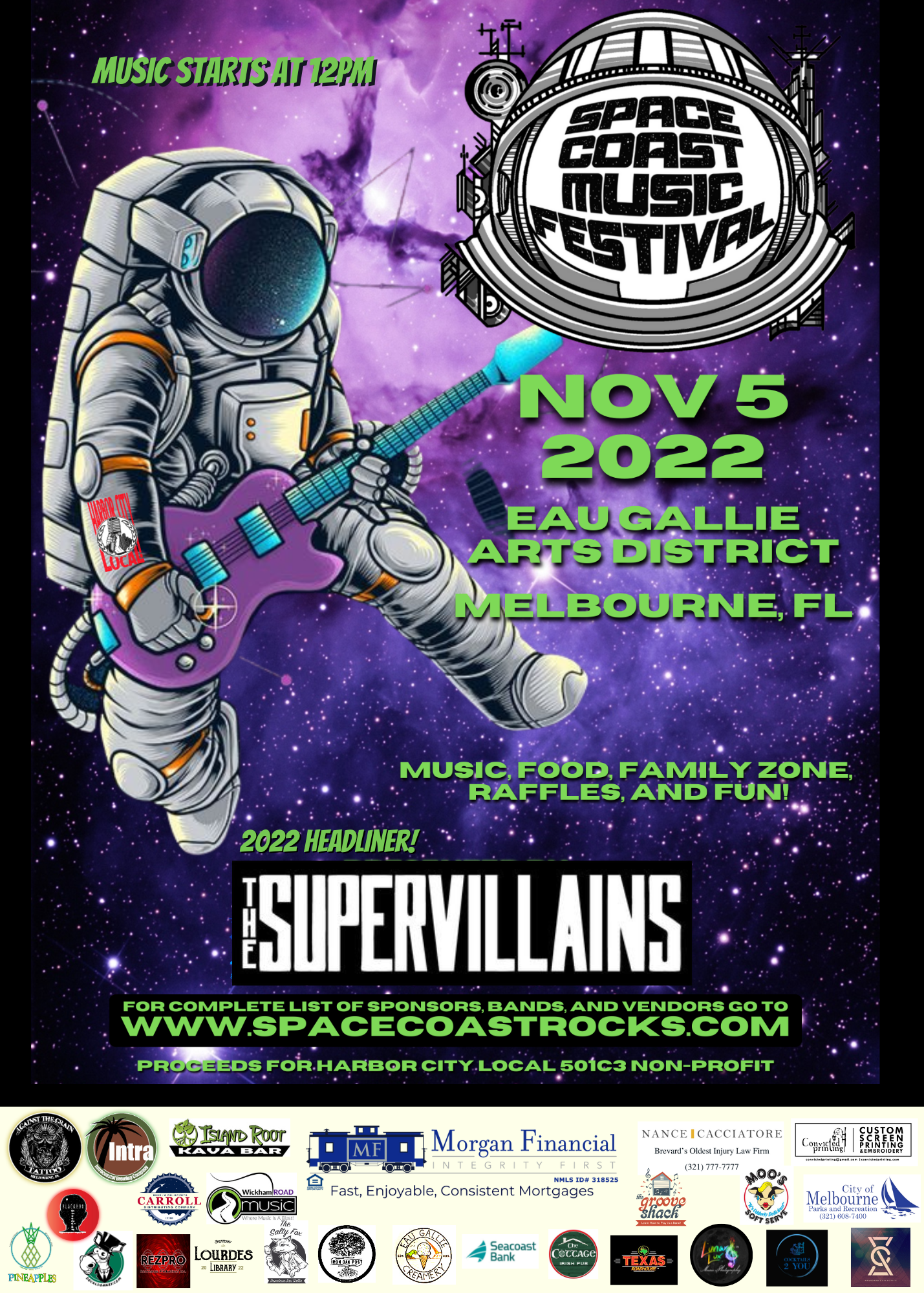 . Web Space Coast Music Festival 2022 Presented by Morgan Financial Proceeds to Harbor City Local 501c3 Non-Profit November 5th 2022 - EGAD - Melbourne Florida Featuring The. Web The Space Coast Music Festival takes place on November 6 and admission is free. Web Carriage space is strictly Limited to 4 Adults Ages 12 or 2 Adults 12 and 3 Children 1-11 yrs. Web Bands Space Coast Rocks Gary Lazer Eyes Drifiting Roots Zeddemore Tank Top Sixty Foot Giant The Sky Club The Gangly Youth Mangrove Anchors Up DL Serios David.